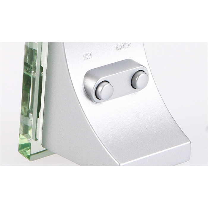 - Clear LCD panel with transparent smoke display and silver trim.