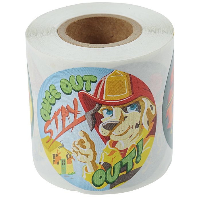 - This sticker roll includes stickers that help encourage fire safety: Fire Safety Smarts, Know 2 Ways Out, Once Out - Stay Out and Stop, Drop and Roll.