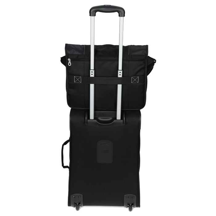 - For a transporting bonus, a trolley strap allows the bag to be slipped over a rolling suitcase's luggage handle and toted around with ease.