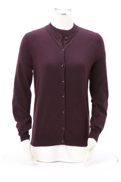 - The short-sleeve sweater shirt and long-sleeve buttoned cardigan are made of 52/31/17 cotton/acrylic/nylon.