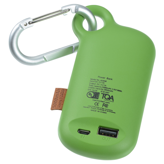 - This UL Listed® powerbank features a battery capacity of 5000 mAh with an output capacity of 2950 mAh.