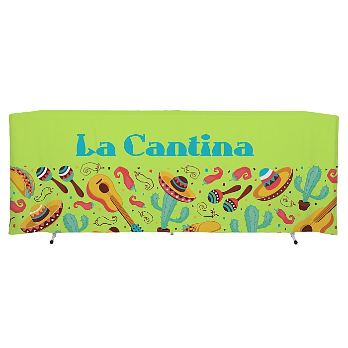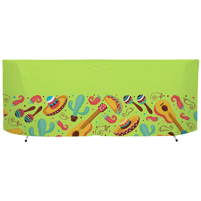- Table throw is made from a 400D polyester knit material.