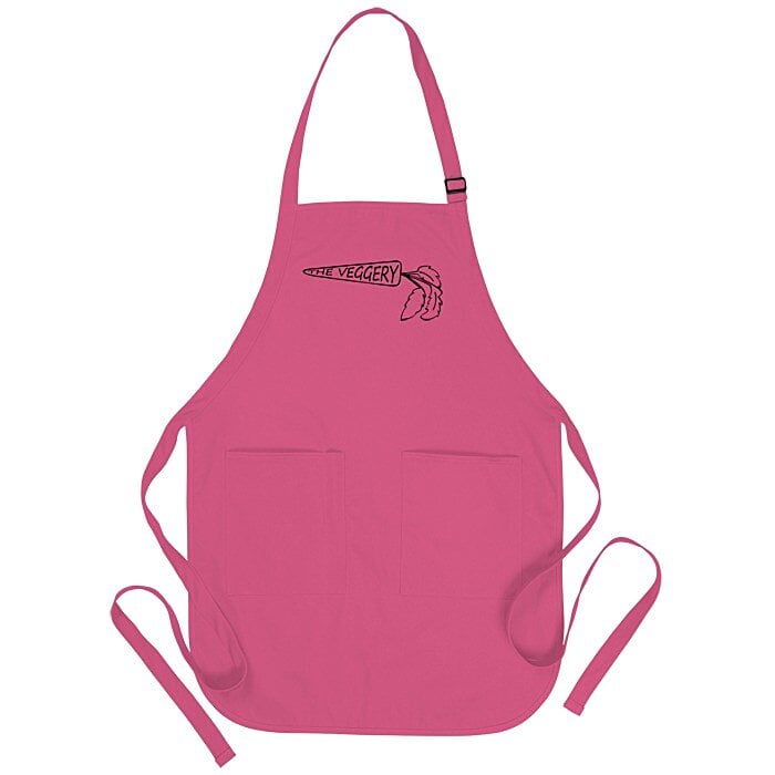 - Your price includes a one color imprint on the front of the apron.