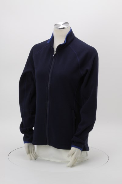 - Designed with a full-zip front with a zip-through mock neck.