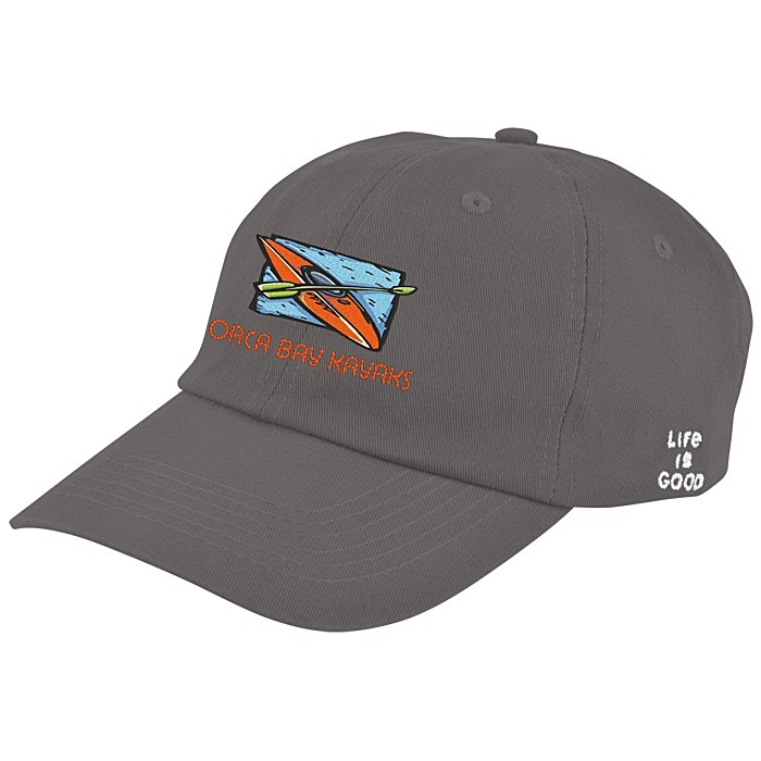 - Life is Good logo embroidered on the left side.