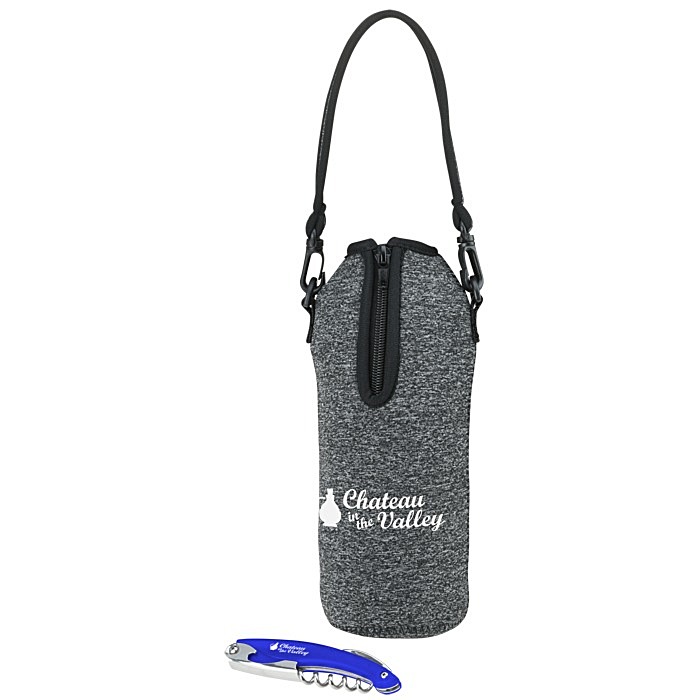 - Your price includes a one color imprint on side of knife, knife blade, and a one color imprint on the front of wine tote.