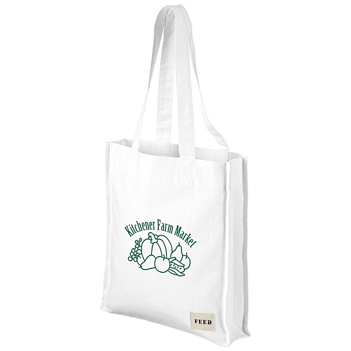 - Your price includes a one-color imprint on the front of the tote, with FEED logo at lower right corner.