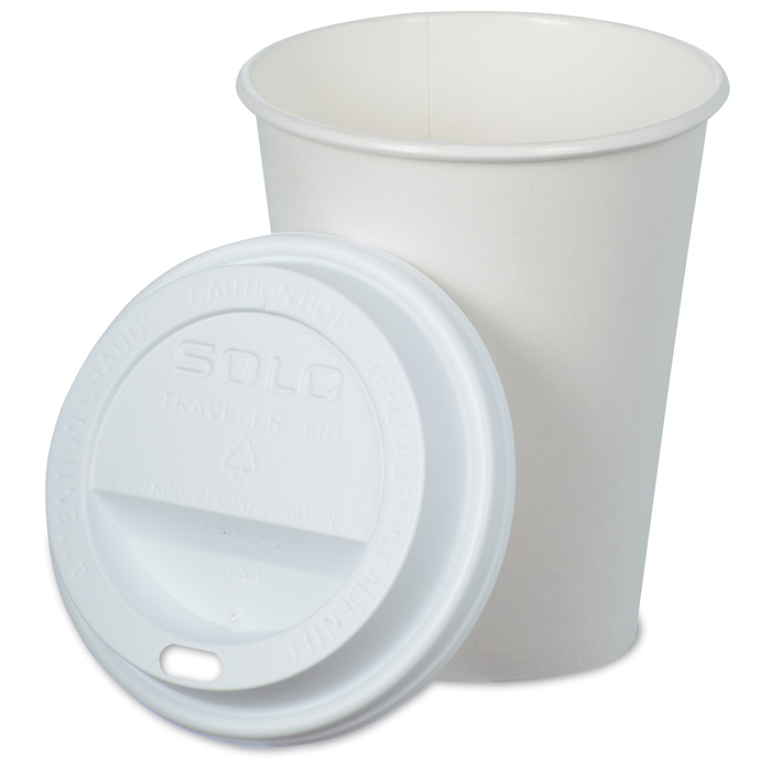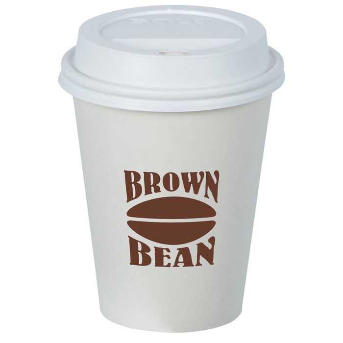 Imprint these white paper cups with your logo. Holds 8 oz. of hot or cold beverages. Includes traveler drink through lid.