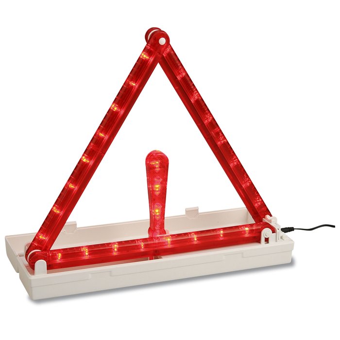 - White plastic case contains ultra-bright red flashing LED lights that draw attention to a car on the side of the road.