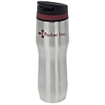 (intro music plays) Hi, my name is Amie (Order Administrator), and today I'd like to show you the Persona Caturra Vacuum Travel Tumbler (item #134264). This 16-ounce tumbler is made of stainless steel, so it looks great and holds up to an active lifestyle. The black screw-on lid features a push-button closure. Push it down to enjoy your beverage, then push it again to prevent any spills and splashes. This tumbler also features a colored silicone band to give the tumbler a pop of color. You can even put your one-color imprint on the top front of the tumbler. As always, if you have any questions about this or any other product, please contact one of our friendly customer service representatives. Thanks for watching 4imprint online videos. This has been the Persona Caturra Vacuum Travel Tumbler (item #134264). (For help, call 1-877-446-7746 or email [email protected])