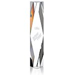 Reward them with good looking awards. Hi, my name is Frankie and today we're checking out the Presidential Crystal Tower Award. This tower award features tapered, highly polished bevels that reflect light. Place the squared freestanding columns on a desk, mantle or a bookshelf. Your price includes a deep etch imprint on the back of the award and personalization is available at no extra charge. Included is a gift box to keep the awards safe and class up the presentation. It's the Presidential Crystal Award from 4 Imprint.